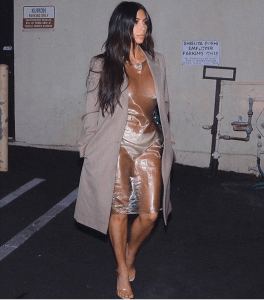 En esta ocasión, decidió combinar un vestido naked por encima de la rodilla con un abrigo de corte recto, ropa interior de color nude y unos zapatos también transparentes firmados Yeezy, la marca de su marido Kanye West.