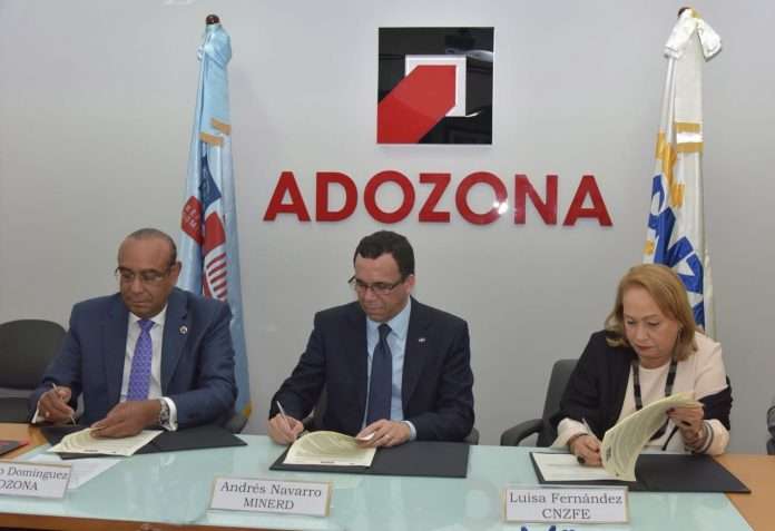 SANTO DOMINGO.- El ministro de Educación, Andrés Navarro, el presidente de la Asociación Dominicana de Zonas Francas (ADOZONA), Federico Domínguez Aristy; y la directora ejecutiva del Consejo Nacional de Zonas Francas de Exportaciones (CNZFE), Luisa Fernández Durán, firmaron un acuerdo dirigido a implementar programas de capacitación en las áreas de manufacturas y servicios competitivos a estudiantes de bachillerato de los centros educativos públicos y privados, así como promover el establecimiento y desarrollo de politécnicos en las demarcaciones cercanas a los parques de zonas francas.