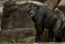 Notable interés de un gorila viendo fotos de hembras en un celular se vuelve...