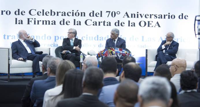 Además de Vargas y Almagro, en el panel participó el consultor jurídico del Poder Ejecutivo, Flavio Darío Espinal, quien expuso sobre “70 años de democracia y derechos humanos en las Américas”. También, el embajador dominicano en Canadá y exembajador ante la OEA, Pedro Vergés, con el tema: “Seguridad y paz en las Américas. El papel de la OEA”.