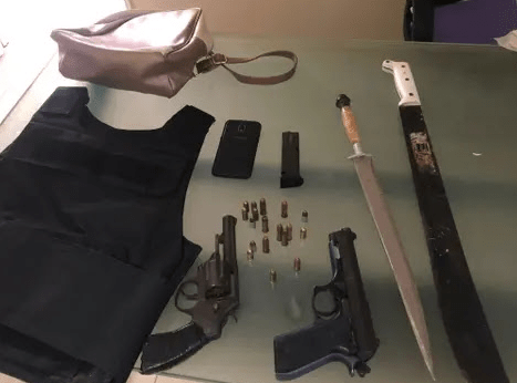 Joel Sánchez Rijo (a) Caco de Tayota, fue detenido mediante orden de allanamiento en su residencia ubicada en el municipio de Villa Hermosa, donde las autoridades encontraron una pistola, un revólver, un chaleco antibalas, un machete y un puñal.