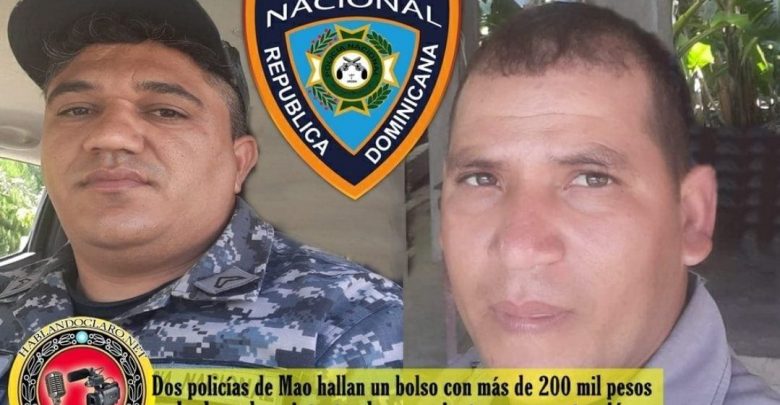 MAO, Valverde.- Dos agentes de la Policía que prestan servicios en esta ciudad de Mao, encontraron un bolso con más de 200 mil pesos en efectivos y cuantiosas prendas de oro, el cual se le habría caído a un comerciante sin darse cuenta pero fue recuperado y entregado a su dueño. El hecho ocurrió la pasada semana en la Avenida Monseñor Tomas Abreu.