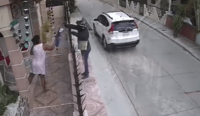 En un video captado por una cámara de vigilancia, se observa el momento en que un hombre, -que según informaciones es la expareja de la fémina-, se presentó a la vivienda de la misma a entregare un ramo de flores y luego le lanzó el ácido, huyendo del lugar.