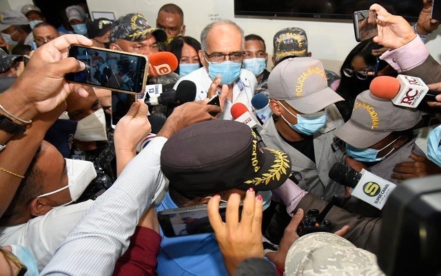 Decenas de personas se apostaron en los alrededores del Palacio de Justicia de Ciudad Nueva en la capital, para exigir la libertad del acusado, quien fue suspendido temporalmente del cargo por el presidente Luis Abinader, luego de que el propio Faña se lo solicitara a través de una carta.