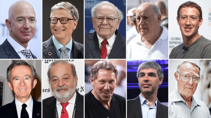 La lista de los diez máximos multimillonarios del mundo que Bloomberg actualiza diariamente, computando las ganancias y las pérdidas obtenidas por los magnates y sus empresas en la bolsa, muestra algunas constantes.