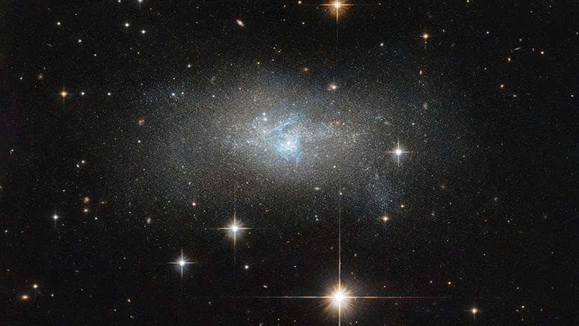 Astrónomos de la NASA con la ayuda del telescopio Hubble recibieron la imagen de la galaxia enana IC 4870 con hilos de gas azul en el centro.