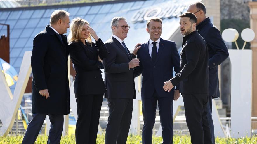 Durante la jornada, Macron, Merz, Starmer, Tusk y Zelenski posaron junto a la presidenta de la Comisión Europea, Ursula von der Leyen, en una imagen simbólica publicada en redes con el lema: «Juntos».