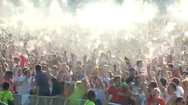 Al menos 3.500 hinchas británicos se reunieron en el parque frente al Palacio de Kensington y festejaron lanzado sus bebidas al aire tras la anotación del defensor, que abrió el marcador del partido.