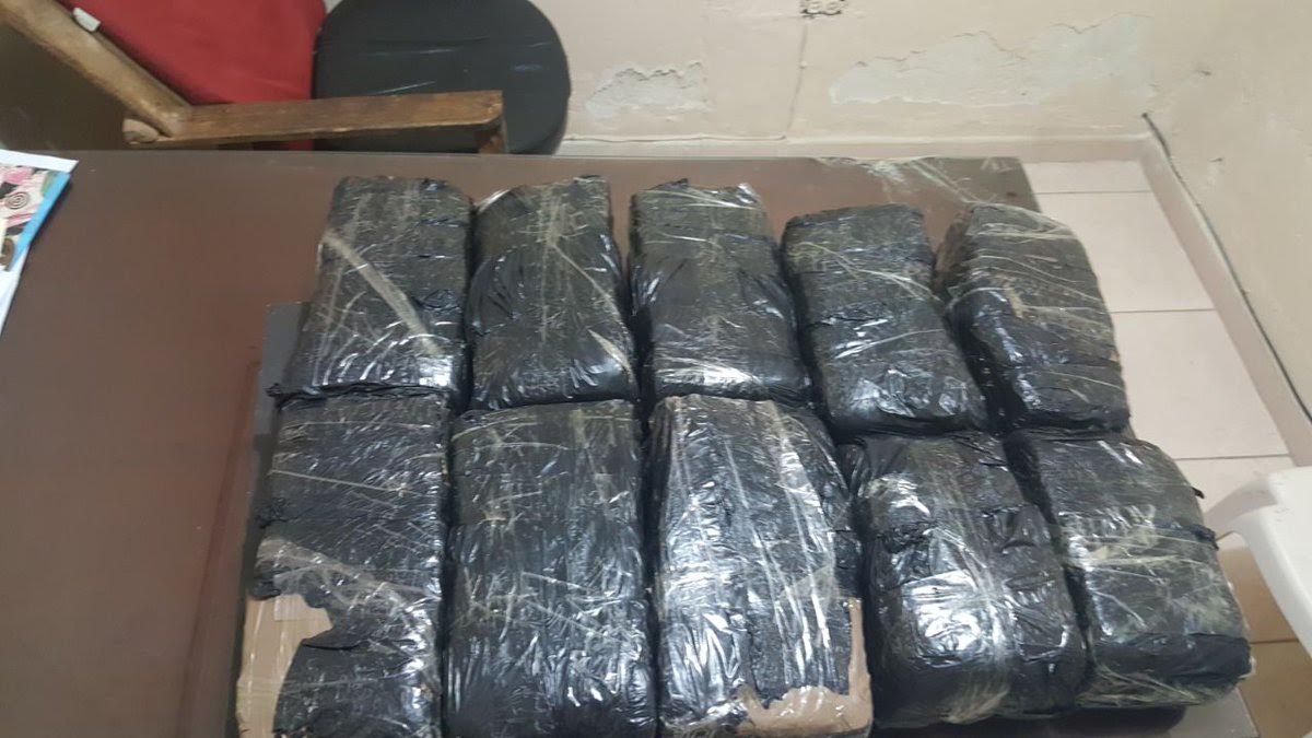 Ambos sujetos llevaban como equipaje una caja en cuyo interior se encontraron 6 pacas de marihuana, envueltos en pedazos de fundas plásticas de color negro con cinta adhesiva transparente, así como un bulto de color negro conteniendo 4 pacas más, del citado vegetal.