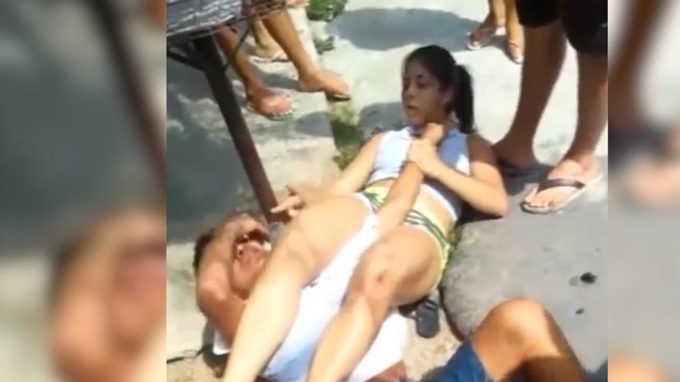 Eligieron a la víctima al azar y pensaron que no opondría resistencia. La idea fue un fracaso. La joven resultó ser una luchadora de jiu-jitsu que se defendió, los corrió e inmovilizó a uno de los asaltantes con sus piernas. La curiosa escena fue registrada en un video por un testigo.