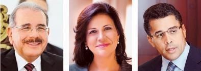 Luis Abinader, del Partido Revolucionario Moderno, concentró un 50% favorable y 40% desfavorable, el expresidente Leonel Fernández 40% favorable y 56% desfavorable e Hipólito Mejía, 34% favorable y 62% desfavorable.