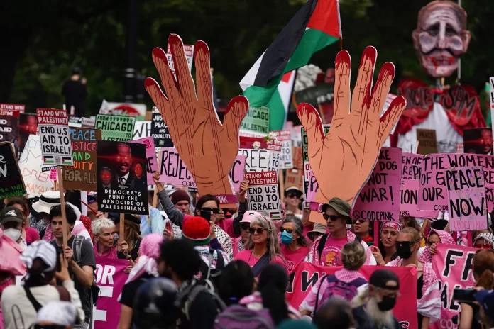 Chicago (EE.UU.), (EFE).- Mientras los líderes del Partido Demócrata estadounidense se preparan para cimentar la elección de Kamala Harris como su candidata presidencial en Chicago, miles de personas tomaron este lunes las calles de la ciudad para pedirle a la también vicepresidenta un cambio en la política del país hacia el conflicto en Gaza.