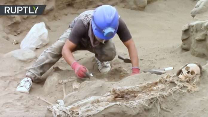 Un macabro hallazgo fue realizado este viernes en la provincia peruana de Trujillo, donde un equipo de arqueólogos desenterró los esqueletos de 56 niños que fueron sacrificados en un ritual durante el período de la cultura Chimú (1100-1400 d.C.).