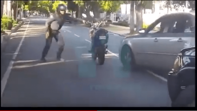Hasta el momento se desconoce la identidad del agente y a qué institución pertenece, así como la del conductor del carro.