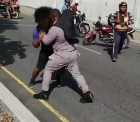 VIDEO: Joven se va a la trompada con agentes policiales